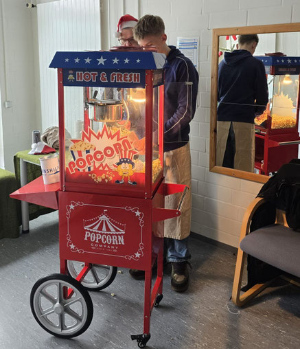 Für einen duftenden Höhepunkt sorgte frisch zubereitetes Popcorn, das ein Vorstandsmitglied mit viel Engagement für die Gäste zubereitete.
